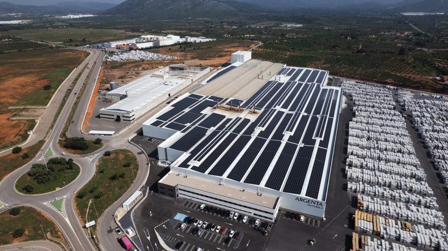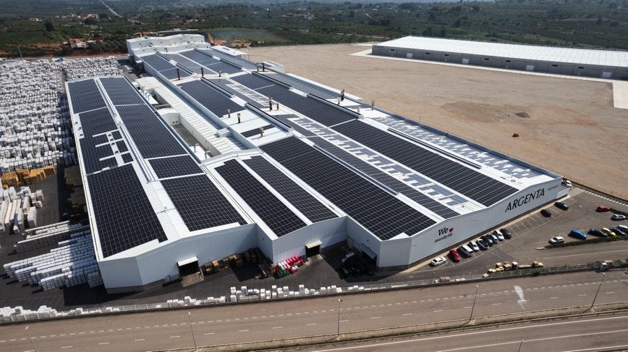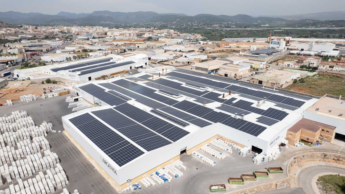 The self-consumption solar plant installed at Argenta Cerámica (Castellón) has a power output of 4,490 kWp, with more than 8,300 solar panels distributed over 21,256 m² of roof space. This installation generates 6,378 MWh per year, avoiding the emission of 2,325 tons of CO₂ annually, the equivalent of planting more than 116,000 trees. A firm step towards more sustainable ceramic production.